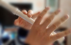 La terza nota alterata che esamineremo oggi è il sol#, che corrisponde anche al lab: esso si suona con la combinazione 2+3. Vuol dire di abbassare le prime due dita della mano sinistra più le prime tre dita della mano destra, così: