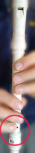 Il do# basso (che corrisponde anche al reb) si fa lasciando aperto il primo dei due forellini che si trovano sul foro n. 8, così: