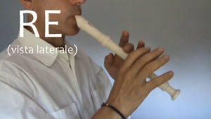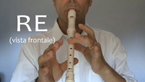 La seconda nota acuta che incontriamo nel nostro metodo, su cui ci eserciteremo oggi, è la nota RE, che è l’unica nota finora incontrata in cui dobbiamo alzare il pollice sinistro.
